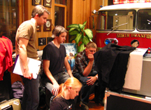 James Israel and Jeff Israel on the set of their latest short film, Face Value with Script Supervisor Luci Westphal-Solary and Director of Photography Matthew Hale. (Photos by Kenny Trice.) |
